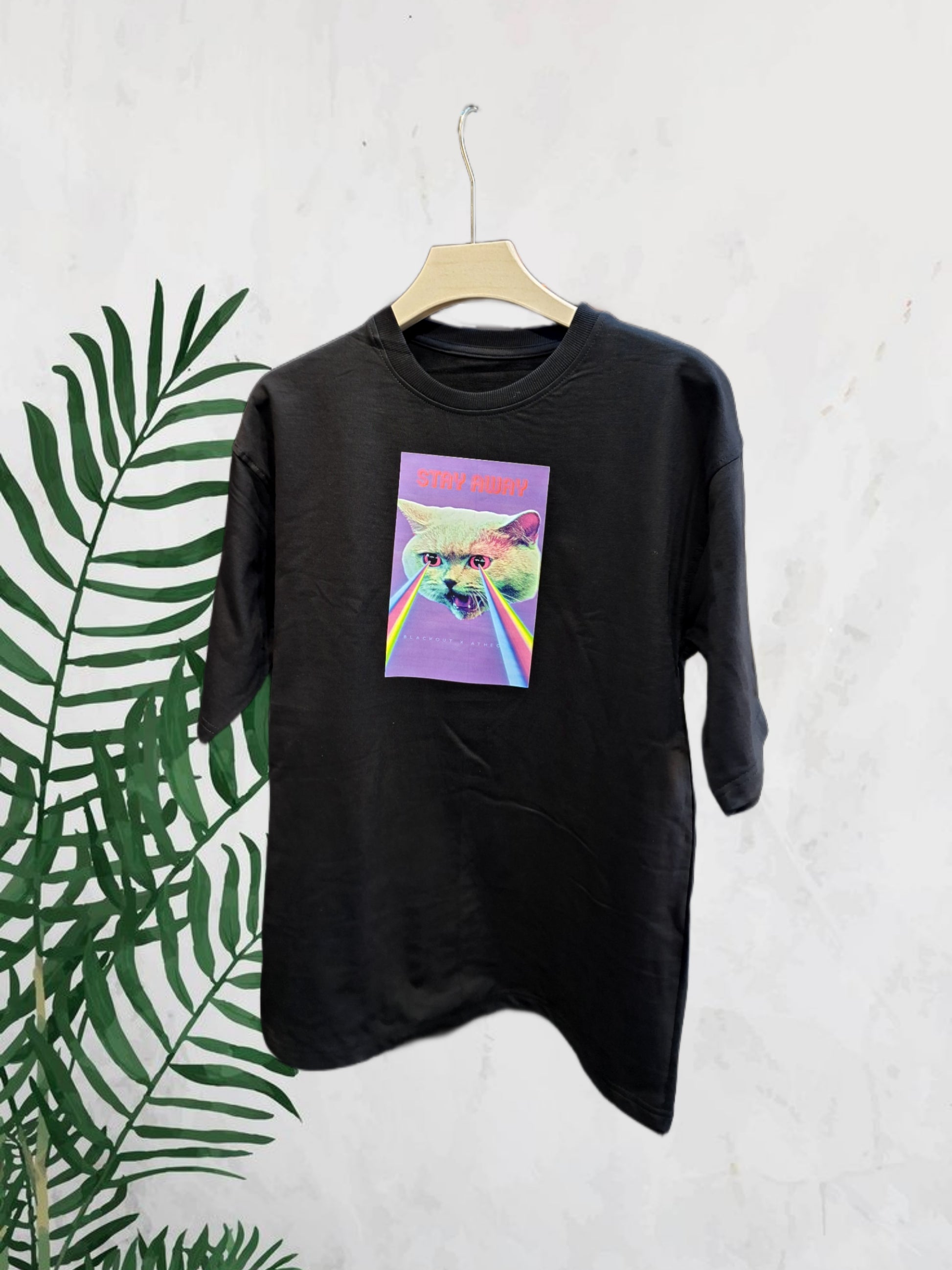 091 STAY AWAY PRINT OVERSIZED T SHIRT
